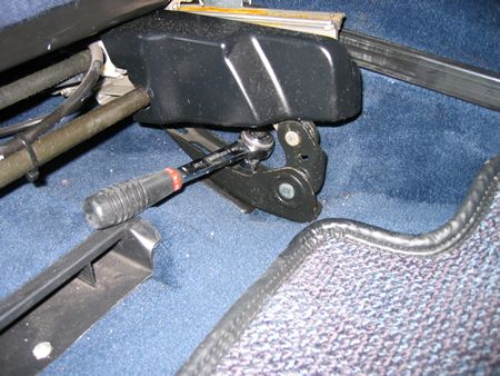 後ろ側も同じく2面幅10mmのボルト2本外します ここではシートを前にして後ろ側を上に上げるとボルトにアクセス出来ました |