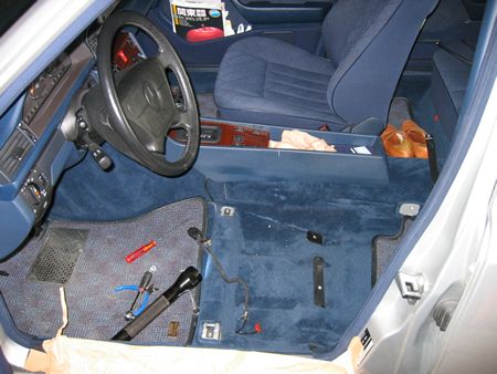 サイドシルにキズ防止の養生してから持ち上げて車外へ |