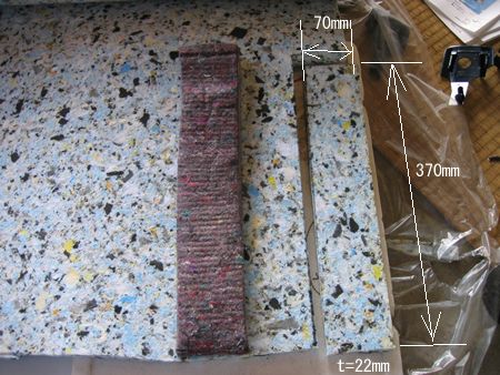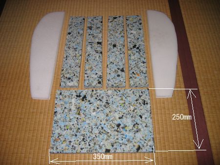 これで入れる材料が揃った 厚さ22mmのチップウレタンと15mmのスポンジ(白) |