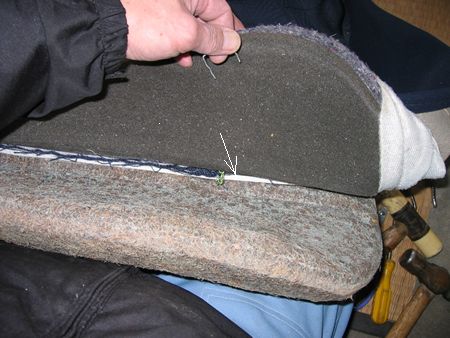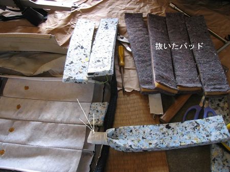 続いてヤシ繊維のパッドを取り付ける。 まずこの部分2箇所で位置決め |