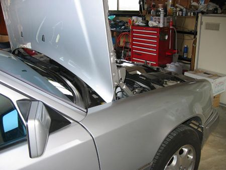 2006年5月30日 自宅ガレージにて作業開始 コツコツ音の原因究明とFコントロールアームボールジョイントブーツとタイロッドのブーツを交換する予定 |