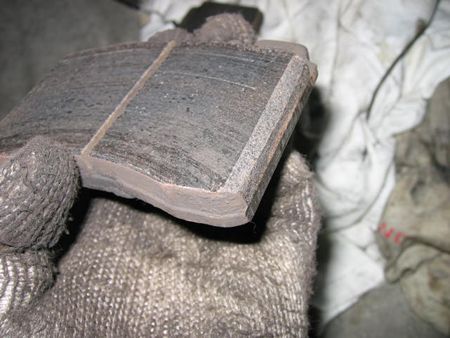 Fブレーキパッドのカドを大きめに削った これはクリープグローン対策に効果ありました。 |