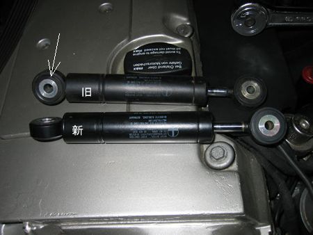 新・旧テンショナーダンパー 外したものはダンピング能力は十分残っていたが矢印のブッシュにガタがあり音の原因に(これは定番のトラブルというか消耗品のようですね) テンショナーダンパー品番 103 200 0114 |