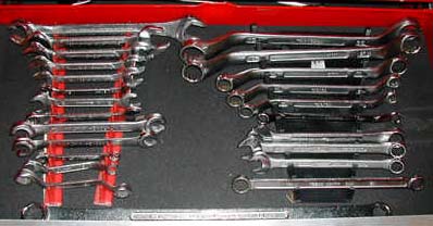 コンビネーションレンチ(よく使うのは13,15,17,)、メガネレンチ(9,10,13,17,19,22)、フレアーナットレンチ(11-13,12-14)、オープンエンドレンチ、ロングストレートメガネ(17−19mm) |