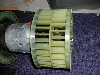 キレイになったファン。モーターの軸受け部分にはスプレーグリスを塗布 |