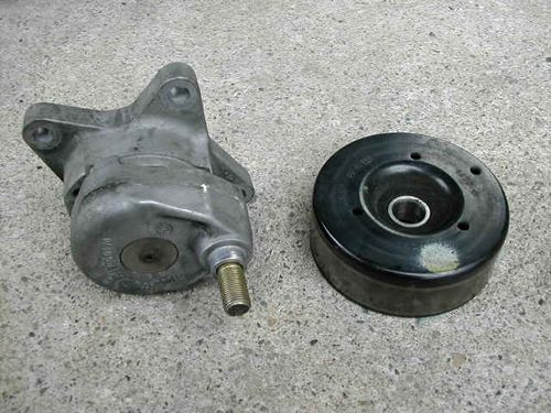 以前から気になっていたエアコンONで(コンプが回ると)うなるような音がする症状についてE320に乗る友人から情報をいただきました。それは私と同じくエアコンONで音が出るとのこと・・アイドルプーリー・ベルトタイトナープーリーの交換で音が収まったようです。4年と24000kmのあいだベルトドライブ関係はメインテナンスしてなかったので淡い期待(音が収まるかも・・)を抱きながらベルトタイトナー・アイドルプーリー・リブドベルトを交換してみました。