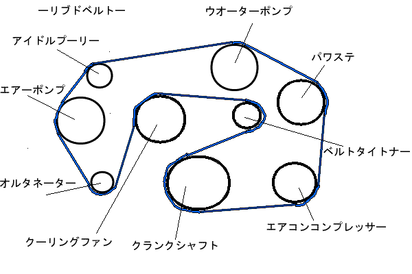 ベルトはこのようにかけます。最後にアイドルプーリーを取り付けてからテンションをかけます。 下手な図ですみません(^^; |