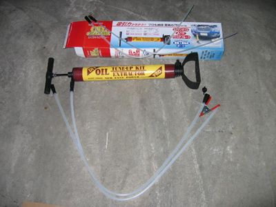 Fさんに教えていただきヤフオクで購入したオイルチェンジャー 4月にエンジン内部洗浄してから1500kmほどしか走行していませんが洗浄後は早めに交換を勧められていたので。 |