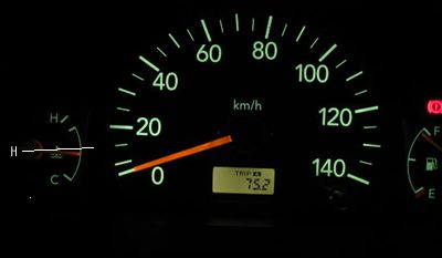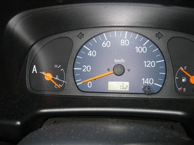 30分以上走っても水温計が真ん中まで上がらず信号で止まるとAのラインくらいまで水温低下してしまう。 |