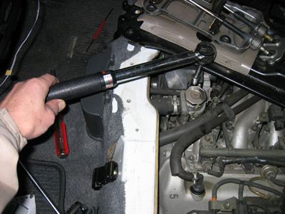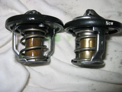 新品のサーモスタット入れてボルトを締める 相手がアルミなのでM8ながら20Nmで締めた この後抜いておいたLLCを注入。 |
