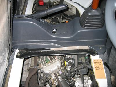 Pブレーキレバーしたのパネルは嵌っているだけなのでキズつかないように外す(持ち上げる) |