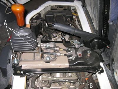 Bの2面幅10mmボルトは4箇所 Aの2面幅12mmボルトも4箇所外す |