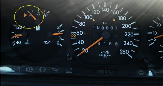 まず燃料が少なくなるように準備しておきました。警告等が点灯したら残りは約7L.