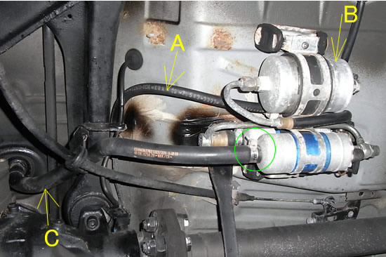 Cはタンクからポンプまでの太いホースで2013年に交換