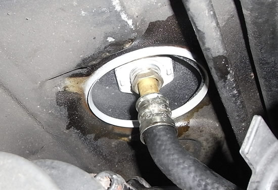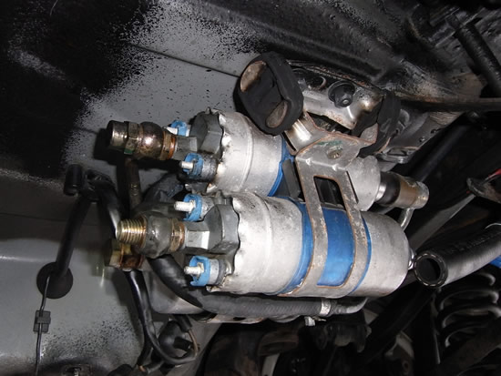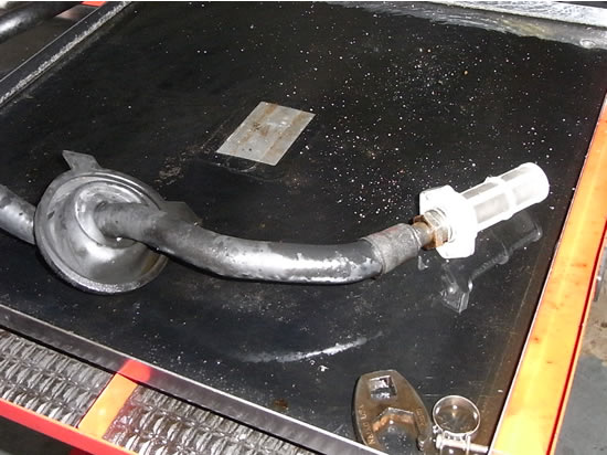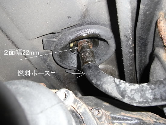タンクからのホースは22mmナットでとまっています。タンクフィルターからフューエルポンプまでの太いホース