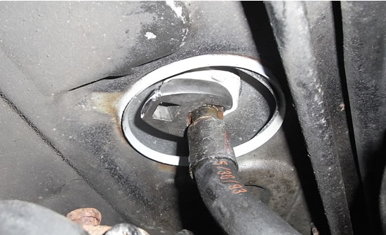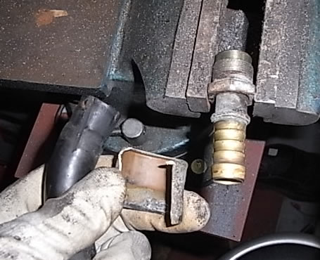 タンク直下のホース、カシメを切ってホース抜いてみました。