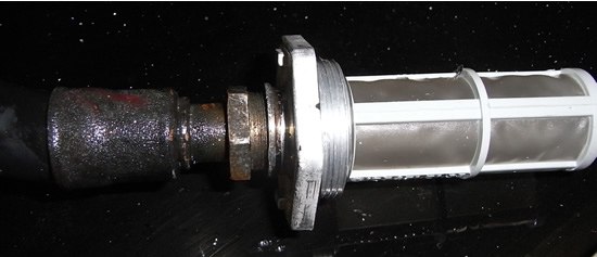 きれいなフィルターでした。ゴミ・さびありません。もし ここにさびやゴミがあると新しくしたポンプから異音が出る場合があるとSJのHPにありましたので要チェックです。