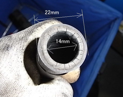 こんなサイズのガソリンホースが50cmくらいあれば交換可能です。
