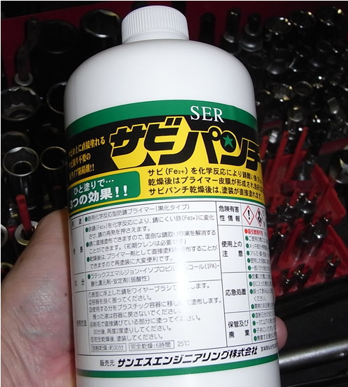 以前から気になっていた下回りのさび・・・ワイヤーブラシなどで丁寧に落とし「サビパンチ」という転換剤ハケで塗って・・・
