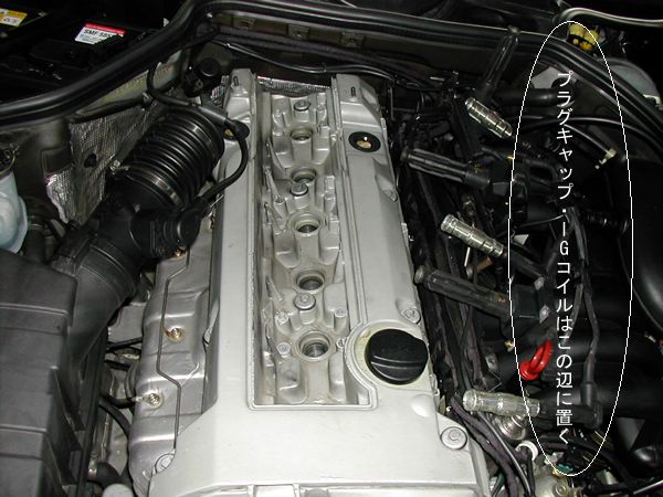 IGコイルのカバーを外しハーネスごとコイル、サプレッサーを移動