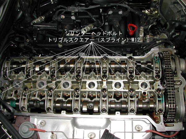 真上から見てみる ヘッドボルトは全部で14本 M12のトリプルスクエアー