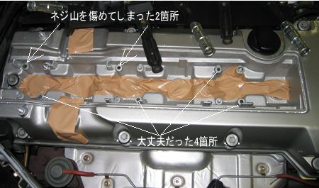 ヘッドカバー塗装 後編 (ネジ山修正 リコイルキット使用) 作業日 2005.7.5
