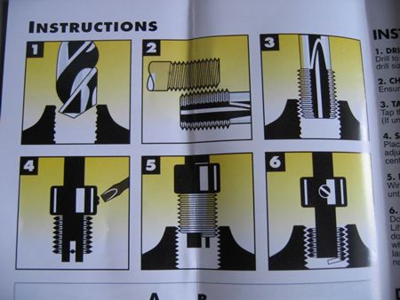 リコイルキットに入っていた説明書 1、6.3mmのドリルで(今回は深さ30mm)穴を広げる 2、リコイルキット付属のタップでネジ切り 3、穴をエアーガンで掃除してからリコイルを専用工具でねじ込む 4、ボルトの入る深さを慎重に見極め丁度良い深さにリコイルを置き去りにする。(斜めに入ったり深く入れすぎるとダメになるので注意が必要) |