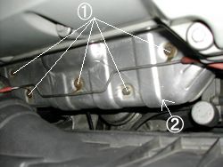 エキパイ上@のボルト5個緩めAのヒートシールドを外す。 |