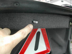 トランクを長時間開けておくと照明が付きっぱなし・・こんな時このポッチを引っ張ると照明が消えます。そのまま閉めれば元の位置に戻ります。 |