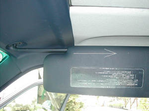 サンバイザー編。サイドからの日差しが強い時サンバイザーを90度動かしサイドウインドー側にします。この位置でも日差しを遮れない時には・・・ |