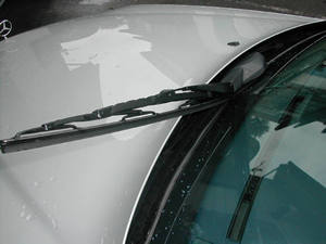 ワイパーは持ち上げた位置で止まります。長い間クルマに乗らない時にラバーを傷めません。またワイパー交換の時ここで止めると作業がやりやすいですね。注意点はこの状態でボンネットを開けられないことです。 |