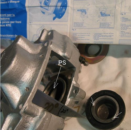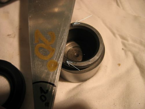 キャリパーにはシリコングリスを薄く塗布したピストンシールをはめ込んでおく ピストンにある段差に注意 |