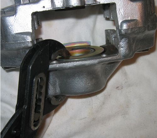 ピストンにはブレーキフルードを塗布しこのような角度で入れる その後ダストシール周辺をキャリパーに押し込む(この部分には絶対油分を付けないことが大切です) |