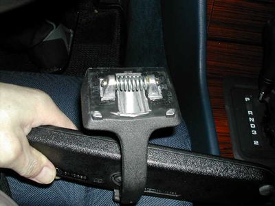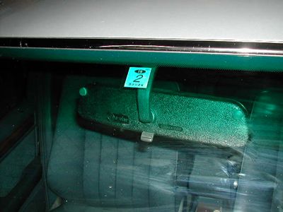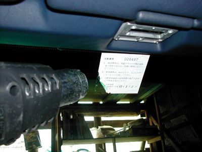 車検ステッカー貼るためにルームミラー外します 強いスプリングではまっているだけなので引っ張れば外れます |