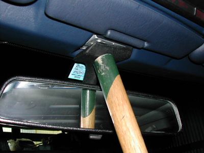 ルームミラーはきついのでハンマーの柄で押し込み終了 |