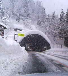 | 当日はものすごい大雪!道路両脇には除雪した雪の山が3mを超えています | 地震で壊れた「和那津トンネルも通行可能に・・ | 帰りの高速道路 |