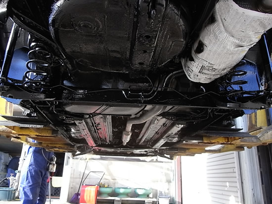 我が家では必ず腰越車体さんで念入りに専用塗料を使ったサビ止め塗装をしてもらっています。厚く弾力性のある塗料なので路面からの雨音なども防げて静かになります。
