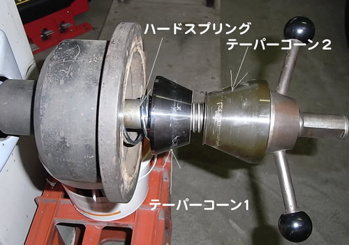 外側からもテーパーコーン2でセンタリングしながら押しつける方法です。