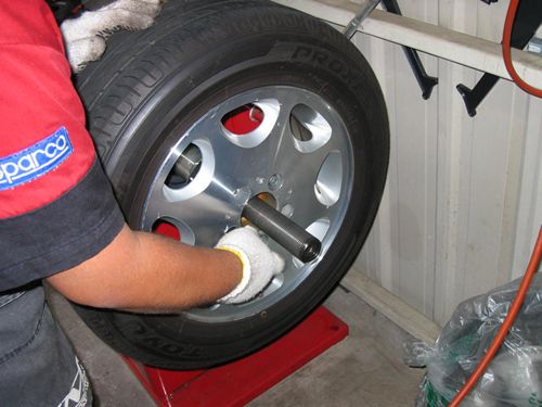 W124 E280 フランジプレートによるホイールバランス調整 2007.8.7. 91495km